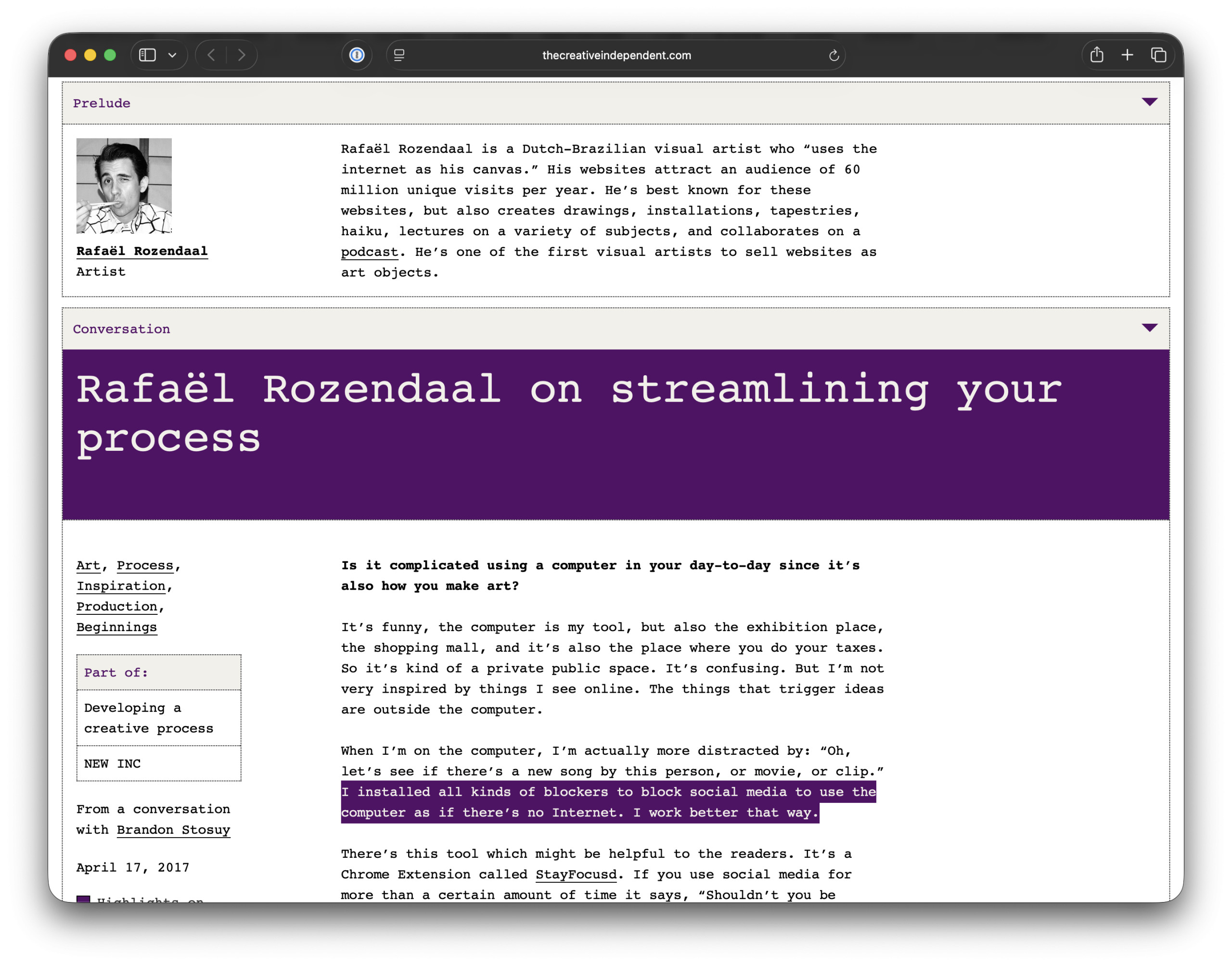 Interview at The Creative Independent